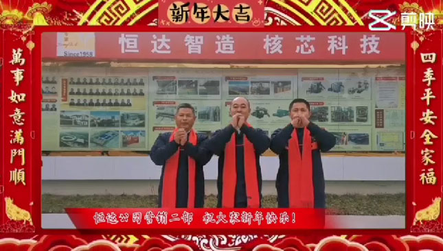 在此新春到來(lái)之際,南通恒達(dá)公司董事長(zhǎng)崔恒全先生攜全體員工祝大家:芝麻開(kāi)花節(jié)節(jié)高、百尺竿頭日日升、前程似錦、大展宏圖、萬(wàn)事如意、心想事成!