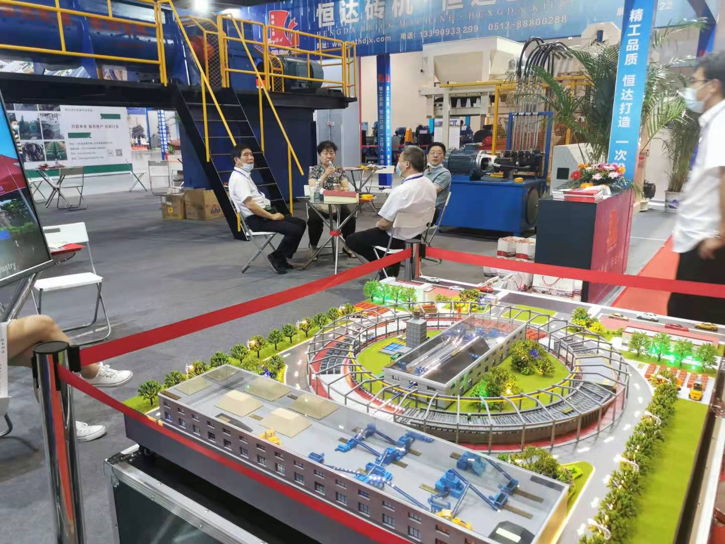 南通恒達(dá)公司作為中國(guó)磚瓦協(xié)會(huì)會(huì)員,中國(guó)砌塊協(xié)會(huì)會(huì)員,移動(dòng)式隧道窯行業(yè)標(biāo)準(zhǔn)起草單位,攜帶公司最新產(chǎn)品JKY75/65B-40真空擠出機(jī)(時(shí)產(chǎn)35000-50000標(biāo)磚),QT8-12混凝土磚機(jī)(100000標(biāo)磚/天),移動(dòng)式隧道窯逼真模型參展,作為為數(shù)不多的帶設(shè)備參展廠家,展位人氣爆棚,即使客戶(hù)不來(lái)公司實(shí)地考察,在展位就能真切感受到恒達(dá)設(shè)備的品質(zhì)精良。