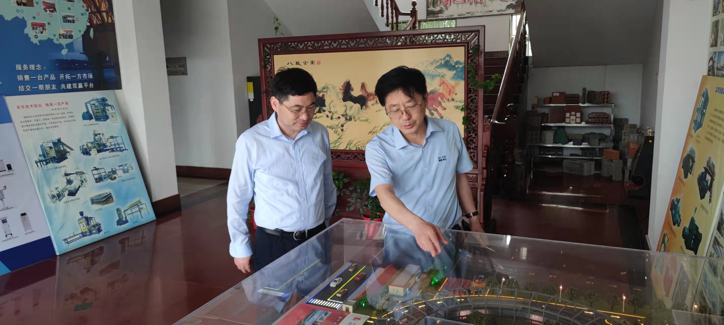 產(chǎn)廠區(qū),現(xiàn)場聽取了公司董事長崔恒全及技術(shù)人員的研發(fā)生產(chǎn)等情況介紹,詳細了解了移動式隧道窯工作原理及實際使用中的節(jié)能高產(chǎn)情況和