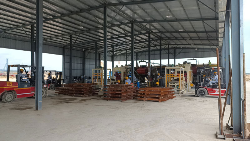 發(fā)貨不是終點(diǎn),確保設(shè)備順利投產(chǎn)并持續(xù)穩(wěn)定運(yùn)行才是我們的目標(biāo)。根據(jù)和客戶溝通的時(shí)間節(jié)點(diǎn),2023年8月份我司派售后服務(wù)部技術(shù)人員前往印尼現(xiàn)場(chǎng)進(jìn)行指導(dǎo)安裝調(diào)試,通過(guò)和業(yè)主的緊密配合,奮戰(zhàn)30天,兩條QT6-15全自動(dòng)砌塊機(jī),全自動(dòng)離線碼垛機(jī),全自動(dòng)打包機(jī)安裝完成,順利出磚,碼垛,打包。在對(duì)客戶操作人員進(jìn)行培訓(xùn)又穩(wěn)定運(yùn)行30天后,得到客戶的確認(rèn)和肯定,我司技術(shù)人員返回國(guó)內(nèi)。