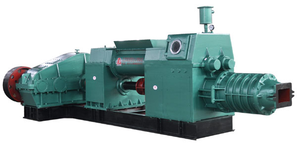 該機是空心磚生產(chǎn)線擠出成型設(shè)備。適用于高孔洞率空心磚,高摻量粉煤灰燒結(jié)磚和低塑性粘土磚及煤矸石、頁巖磚的生產(chǎn)。具有結(jié)構(gòu)新穎、技術(shù)先進(jìn)、擠出壓力大、產(chǎn)量高、真空度高的特點,可替代進(jìn)口設(shè)備。采用氣動離合器控制。靈敏、方便、可靠。該機出口俄羅斯、蘇丹、孟加拉等國,深受外商的好評。